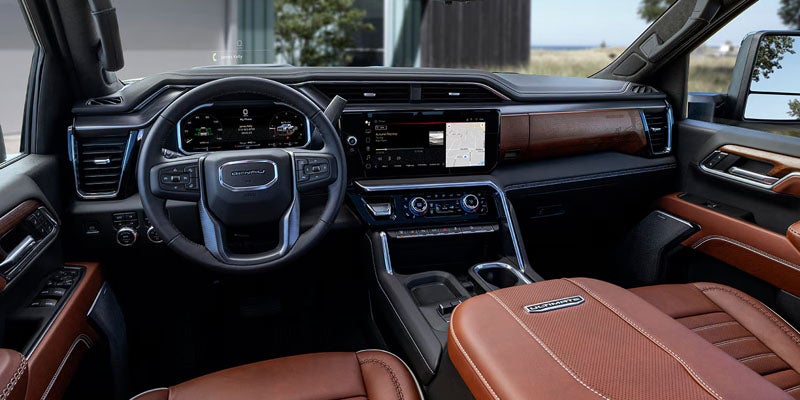 Step inside the 2026 GMC Sierra 3500HD, where rugged durability meets premium comfort. The interior is crafted with high-quality materials designed to withstand the demands of a heavy-duty vehicle while providing a luxurious driving environment. The front seats are designed for long-haul comfort, offering ample support and adjustability. In higher trims like the Denali, you'll find leather seating, wooden accents, and sophisticated tech features, creating a refined and premium atmosphere. The Sierra 3500HD boasts a spacious cabin, with generous room in both the front and rear seats, ensuring comfort for all passengers. Cargo space is plentiful, with multiple configurations to suit your specific needs, from hauling tools to weekend gear. The truck also features an intuitive, easy-to-use infotainment system with Apple CarPlay® and Android Auto™ integration, providing seamless connectivity for your devices. The available Bose® premium audio system delivers an immersive listening experience, adding to the comfort and convenience of every ride.