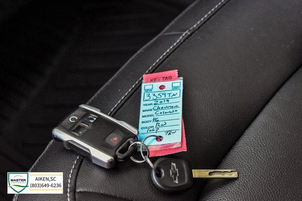 This vehicle is located at Master Chevrolet Cadillac in Aiken, SC! It is equipped with Heavy-Duty Trailering Package, Preferred Equipment Group 4Z7 (UltraSonic Rear Park Assist), 2 USB Data Ports w/SD Card Reader, 3.42 Rear Axle Ratio, 4-Way Power Front Passenger Seat Adjuster, 4-Wheel Disc Brakes, 6 Speakers, 6-Speaker Audio System Feature, ABS brakes, Air Conditioning, All-Weather Floor Liner (LPO), Alloy wheels, AM/FM radio: SiriusXM, Apple CarPlay, Auto-dimming Rear-View mirror, Automatic temperature control, Bose Premium 7-Speaker Audio System Feature, Bumpers: body-color, Cloth/Leatherette Seat Trim, Compass, Delay-off headlights, Driver 6-Way Power Seat Adjuster, Driver door bin, Driver vanity mirror, Dual front impact airbags, Dual front side impact airbags, Electronic Stability Control, Exterior Parking Camera Rear, Front anti-roll bar, Front Bucket Seats, Front Center Armrest, Front fog lights, Front License Plate Kit, Front reading lights, Front wheel independent suspension, Fully automatic headlights, HD Radio, Heated door mirrors, Heated Driver & Front Passenger Seats, Heated front seats, Heated steering wheel, Illuminated entry, Low tire pressure warning, Occupant sensing airbag, Outside temperature display, Overhead airbag, Overhead console, Panic alarm, Passenger door bin, Passenger vanity mirror, Power door mirrors, Power Driver Lumbar Control Seat Adjuster, Power driver seat, Power Passenger Lumbar Control Seat Adjuster, Power passenger seat, Power steering, Power windows, Premium audio system: Chevrolet Infotainment System, Radio data system, Radio: Chevrolet Infotainment 3 Plus System, Radio: Chevrolet Infotainment 3 Premium System, Rear reading lights, Rear seat center armrest, Rear step bumper, Rear window defroster, Remote keyless entry, Security system, SiriusXM Radio, Speed control, Speed-sensing steering, Steering wheel mounted audio controls, Tachometer, Telescoping steering wheel, Tilt steering wheel, Traction control, Trip computer, Variably intermittent wipers, and Wheels: 17 x 8 Dark Argent Metallic Cast Alloy. Odometer is 12610 miles below market average!Clean CARFAX.2019 Chevrolet Colorado Z71 V6 Cajun Red TintcoatAwards:* 2019 KBB.com Best Resale Value Awards At Master, we develop relationships with our customers that last a lifetime. Our motto is After We Sell, We Serve. Since 1937. But it's more than a motto, it's how we do business.- Will Schafer, President - Celebrating 86 Years of Commitment to Customer Service and our Community. A Multi-Generation Family Business - Locally Owned and Operated.