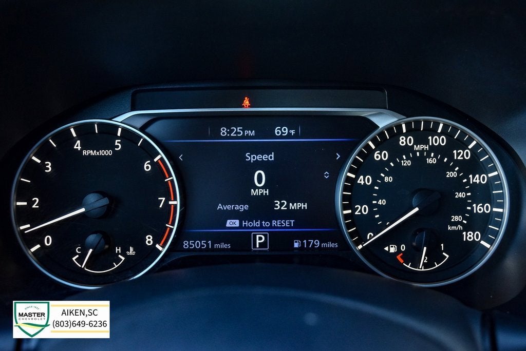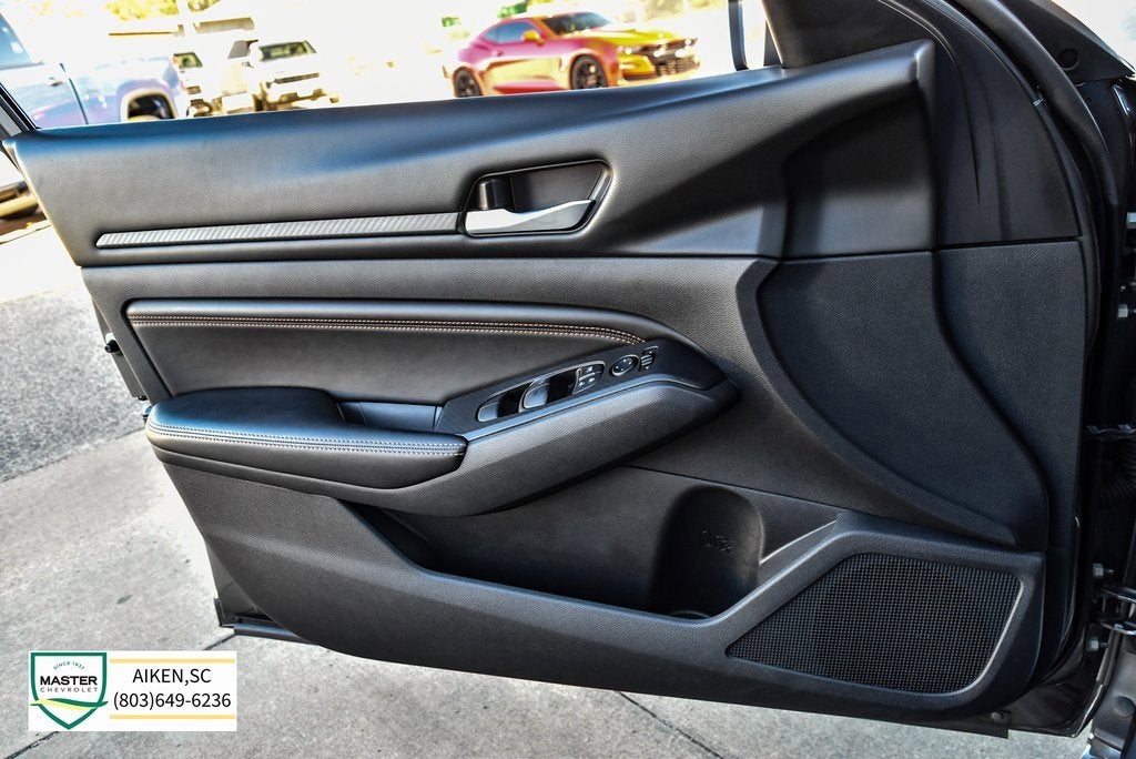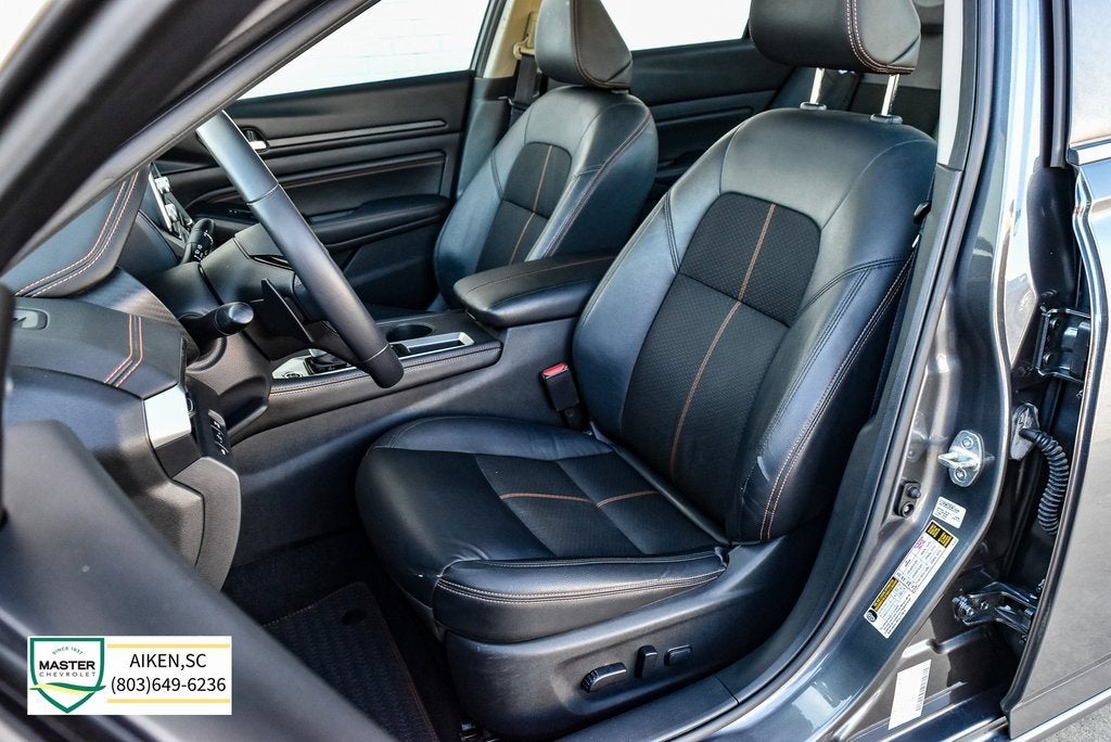 This vehicle is located at Master Chevrolet Cadillac in Aiken, SC! It is equipped with 19 Alloy Wheels, 4-Wheel Disc Brakes, 6 Speakers, ABS brakes, Air Conditioning, Alloy wheels, AM/FM radio: SiriusXM, Auto High-beam Headlights, Blind Spot Warning, Body-Colored Rear Spoiler, Body-Colored Splash Guards, Brake assist, Bumpers: body-color, Delay-off headlights, Driver door bin, Driver vanity mirror, Dual front impact airbags, Dual front side impact airbags, Electronic Stability Control, Four wheel independent suspension, Front anti-roll bar, Front Bucket Seats, Front Center Armrest, Front reading lights, Fully automatic headlights, Heated door mirrors, Heated Front Bucket Seats, Heated front seats, Illuminated entry, Impact Sensor, Knee airbag, Leather Shift Knob, Low tire pressure warning, NissanConnect featuring Apple CarPlay and Android Auto, Occupant sensing airbag, Outside temperature display, Overhead airbag, Overhead console, Panic alarm, Passenger door bin, Passenger vanity mirror, Power door mirrors, Power driver seat, Power moonroof, Power steering, Power windows, Radio data system, Radio: AM/FM Audio System, Rear anti-roll bar, Rear Parking Sensors, Rear reading lights, Rear seat center armrest, Rear side impact airbag, Rear window defroster, Remote keyless entry, Security system, Speed control, Speed-sensing steering, Speed-Sensitive Wipers, Split folding rear seat, Sport Seat Trim, Sport steering wheel, SR Floor Mats/Trunk Mat/Hideaway Nets, Steering wheel mounted audio controls, Tachometer, Telescoping steering wheel, Tilt steering wheel, Traction control, Trip computer, Turn signal indicator mirrors, and Variably intermittent wipers. Recent Arrival!