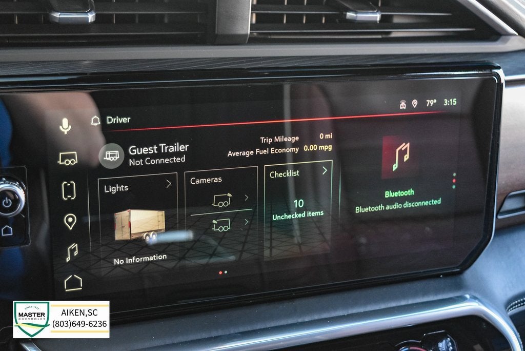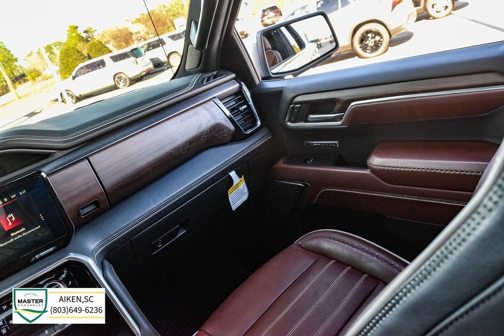 This vehicle is located at Master Chevrolet Cadillac in Aiken, SC! It is equipped with Preferred Equipment Group 5SB (120-Volt Bed Mounted Power Outlet, 120-Volt Instrument Panel Power Outlet, 2 Charge/Data USB Ports Inside Center Console, 2 Type-C Charge-Only Rear USB Ports, 2 USB Ports, Auto-Locking Rear Differential, Bed View Camera, Bose Premium Series w/12-Speaker System, Carbon Fiber Composite Bed, Chrome Recovery Hooks, Color-Keyed Carpeting Floor Covering, Compass, Deep-Tinted Glass, Electric Rear-Window Defogger, Electrical Steering Column Lock, Floor-Mounted Center Console, Front Rainsensing Wipers, GMC Connected Access Capable, HD Surround Vision, Heated 2nd Row Outboard Seats, Heated Driver & Front Outboard Passenger Seating, Heavy-Duty Air Filter, Hill Descent Control, Hitch Guidance w/Hitch View, In-Vehicle Trailering App, Integrated Trailer Brake Controller, Keyless Open & Start, LED Cargo Area Lighting, Multicolor 15 Diagonal Head-Up Display, MultiPro Audio System by Kicker (LPO), OnStar & GMC Connected Services Capable, Perimeter Lighting, Power Door Locks, Power Front Passenger Windows w/Express Up/Down, Power Front Windows w/Driver Express Up/Down, Power Rake & Telescoping Steering Column, Power Rear Windows w/Express Down, Power Sliding Rear Window w/Rear Defogger, Power Sunroof, Push Button Start, Rear Cross Traffic Braking, Rear Pedestrian Detection, Remote Vehicle Starter System, SiriusXM w/360L, Steering Wheel Audio Controls, Theft Deterrent System (Unauthorized Entry), Trailer Camera Provisions, Trailer Side Blind Zone Alert, Trailer Tire Pressure Monitor System, Ultrasonic Front & Rear Park Assist, Universal Home Remote, Vader Chrome Header w/Signature Denali Grille, Ventilated Driver & Front Passenger Seats, Wi-Fi Hotspot Capable, Wireless Charging, and Wireless Phone Projection), Trailering Package (Hitch Guidance), 12 Speakers, 16-Way Power Driver Seat Adjuster w/Lumbar, 16-Way Power Passenger Seat Adjuster w/Lumbar, 170 Amp Alternator, 220 Amp Alternator, 3 Years of OnStar Safety & Security, 3.23 Rear Axle Ratio, 4-Wheel Disc Brakes, ABS brakes, Adaptive suspension, Air Conditioning, Alloy wheels, AM/FM radio: SiriusXM with 360L, Apple CarPlay/Android Auto, Auto High-beam Headlights, Auto-dimming door mirrors, Auto-dimming Rear-View mirror, Automatic Emergency Braking, Automatic temperature control, Brake assist, Buckle to Drive, Bumpers: body-color, Delay-off headlights, Denali Premium Suspension w/Adaptive Ride Control, Driver door bin, Driver Memory, Driver vanity mirror, Dual front impact airbags, Dual front side impact airbags, Electronic Stability Control, Emergency communication system: OnStar and GMC Connected Services capable, Engine Block Heater, Enhanced Automatic Emergency Braking, Following Distance Indicator, Forward Collision Alert, Front anti-roll bar, Front Bucket Seats, Front Center Armrest, Front dual zone A/C, Front fog lights, Front License Plate Kit, Front Pedestrian Braking, Front reading lights, Front wheel independent suspension, Full Grain Leather Seat Trim, Fully automatic headlights, Garage door transmitter, Genuine wood console insert, Genuine wood dashboard insert, Genuine wood door panel insert, Heads-Up Display, Heated door mirrors, Heated front seats, Heated rear seats, Heated steering wheel, Illuminated entry, IntelliBeam Automatic High Beam On/Off, Lane Keep Assist w/Lane Departure Warning, Low tire pressure warning, Memory seat, Navigation System, Not Equipped w/Steering Column Lock, Not Equipped w/Super Cruise/Auto Emergency Braking, Occupant sensing airbag, Outside temperature display, Overhead airbag, Overhead console, Panic alarm, Passenger door bin, Passenger vanity mirror, Power door mirrors, Power driver seat, Power moonroof, Power passenger seat, Power steering, Power windows, Premium audio system: GMC Infotainment System, Radio data system, Radio: Premium GMC Infotainment Audio System, Rain sensing wiper
