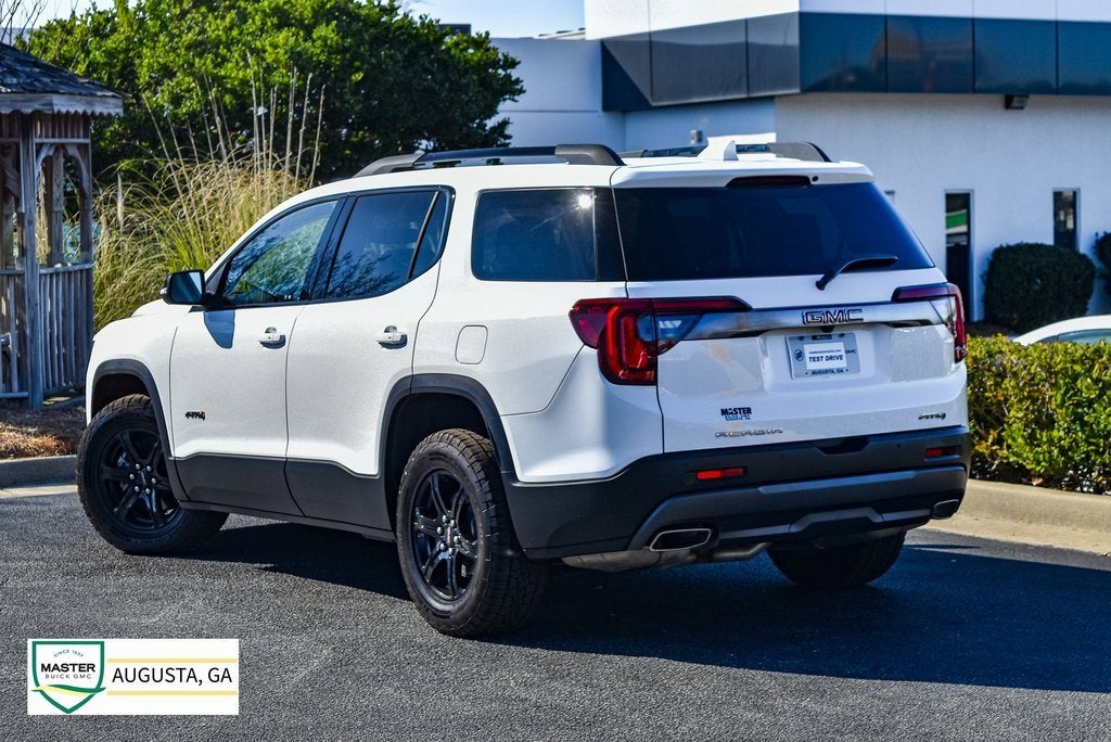 Acadia AT4, 4D Sport Utility, 3.6L V6 SIDI, 9-Speed Automatic, AWD, Summit White, Jet Black w/Perforated Leather-Appointed Seat Trim, 170 Amp Alternator, 1st & 2nd Row All-Weather Floor Liner (LPO), 3rd Row All-Weather Floor Liner (LPO), 4-Wheel Disc Brakes, 8 Speakers, 8-Way Power Driver Seat Adjuster, 8-Way Power Passenger Seat Adjuster, 8 Multi-Color Enhanced Dr Instrument Info Display, ABS brakes, Air Conditioning, Apple CarPlay/Android Auto, Auto High-beam Headlights, Auto-dimming Rear-View mirror, Automatic temperature control, Black Center Caps w/Red GMC Logo (LPO), Bose Premium 8-Speaker Audio System Feature, Brake assist, Cargo Package (LPO), Compass, Delay-off headlights, Dual front impact airbags, Dual front side impact airbags, Dual SkyScape 2-Panel Power Sunroof, Electronic Stability Control, Emergency communication system: OnStar and GMC connected services capable, Floor Liner Package (LPO), Four wheel independent suspension, Front anti-roll bar, Front dual zone A/C, Front fog lights, Fully automatic headlights, Garage door transmitter, HD Surround Vision, Heads-Up Display, Heated & Ventilated Driver & Front Passenger Seats, Heated door mirrors, Heated Rear Outboard Seating Positions, Heated Steering Wheel, Heavy-Duty Cooling System, Hitch Guidance w/Hitch View, Illuminated entry, Integrated Cargo Liner (LPO), Knee airbag, Low tire pressure warning, Luxury Package, Memory Package, Navigation System, Occupant sensing airbag, Overhead airbag, Panic alarm, Power door mirrors, Power Driver Lumbar Control Seat Adjuster, Power driver seat, Power Liftgate, Power Passenger Lumbar Control Seat Adjuster, Power steering, Power Tilt & Telescopic Steering Column, Power windows, Power-Adjustable Body-Color Outside Heated Mirrors, Preferred Equipment Group 4SB, Preferred Package, Radio data system, Radio: AM/FM 8 Diagonal Multi-Touch Navigation, Rear air conditioning, Rear anti-roll bar, Rear window defroster, Remote keyless entry, Roof rack: rails only, Security system, SiriusXM w/360L, Speed control, Speed-sensing steering, Technology Package, Telescoping steering wheel, Tilt steering wheel, Traction control, Trailering Assist Guidelines, Trailering Package, Turn signal indicator mirrors, Wheels: 17 Gloss Black Aluminum, Wireless Apple CarPlay/Wireless Android Auto.