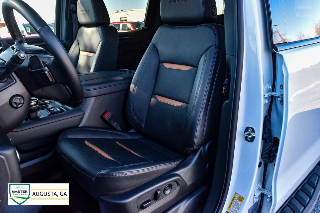 This vehicle is at Master Buick GMC in Augusta, GA.2024 GMC Sierra 1500 4D Crew Cab AT4 EcoTec3 6.2L V8 4WDSierra 1500 AT4, 4D Crew Cab, EcoTec3 6.2L V8, 10-Speed Automatic, 4WD, Summit White, Jet Black w/Kalahari Accents w/Perforated Front Leather Seat Trim, 10-Way Power Driver Seat Adjuster w/Lumbar, 10-Way Power Passenger Seat Adjuster w/Lumbar, 120-Volt Bed Mounted Power Outlet, 120-Volt Interior Power Outlet, 170 Amp Alternator, 18 x 8.5 Machined Aluminum Wheels, 2 Charge/Data USB Ports Inside Center Console, 2 Type-C Charge-Only Rear USB Ports, 2 USB Ports, 220 Amp Alternator, 3.23 Rear Axle Ratio, 4-Wheel Disc Brakes, ABS brakes, Air Conditioning, AM/FM radio: SiriusXM with 360L, Apple CarPlay/Android Auto, AT4 Preferred Package, AT4 Premium Package, Auto High-beam Headlights, Auto-dimming door mirrors, Auto-dimming Rear-View mirror, Auto-Locking Rear Differential, Automatic Emergency Braking, Automatic temperature control, Auxiliary External Transmission Oil Cooler, Black Chrome Header & Grille Insert Bars, Block heater, Brake assist, Buckle to Drive, Color-Keyed Carpeting Floor Covering, Deep-Tinted Glass, Delay-off headlights, Driver Memory, Dual Active Exhaust, Dual front impact airbags, Dual front side impact airbags, Electric Rear-Window Defogger, Electronic Stability Control, External Engine Oil Cooling, Floor-Mounted Center Console, Following Distance Indicator, Forward Collision Alert, Front anti-roll bar, Front dual zone A/C, Front fog lights, Front Pedestrian Braking, Front Prem Floor Liners w/Removable Carpet Insert, Front Rain-Sensing Wipers, Front wheel independent suspension, Fully automatic headlights, GMC Connected Access Capable, HD Surround Vision, Heated 2nd Row Outboard Seats, Heated door mirrors, Heated Driver & Front Outboard Passenger Seating, Heated steering wheel, Heavy-Duty Air Filter, Hill Descent Control, Hitch Guidance, Hitch View, Illuminated entry, In-Vehicle Trailering System App, Integrated Trailer Brake Controller, IntelliBeam Automatic High Beam On/Off, Keyless Open & Start, Lane Keep Assist w/Lane Departure Warning, LED Cargo Area Lighting, Low tire pressure warning, Memory seat, Navigation System, Occupant sensing airbag, Off-Road High Clearance Step (LPO), Off-Road Suspension, OnStar & GMC Connected Services Capable, Overhead airbag, Panic alarm, Perforated Front Leather Seat Trim, Perimeter Lighting, Power Door Locks, Power door mirrors, Power driver seat, Power Front Passenger Windows w/Express Up/Down, Power Front Windows w/Driver Express Up/Down, Power passenger seat, Power Rake & Telescoping Steering Column, Power Rear Windows w/Express Down, Power Sliding Rear Window w/Rear Defogger, Power steering, Power Sunroof, Power windows, Preferred Equipment Group 4SB, Premium audio system: GMC Infotainment System, Premium Bose 7-Speaker Sound System, Push Button Start, Radio data system, Radio: Premium GMC Infotainment Audio System, Rain sensing wipers, Rear Cross Traffic Braking, Rear Pedestrian Detection, Rear Wheelhouse Liners, Rear window defroster, Red Recovery Hooks, Remote keyless entry, Remote Vehicle Starter System, Safety Alert Seat, Security system, SiriusXM w/360L, Speed control, Speed-sensing steering, Spray-On Pickup Bedliner w/AT4 Logo, Steering Wheel Audio Controls, Telescoping steering wheel, Theft Deterrent System (Unauthorized Entry), Tilt steering wheel, Traction control, Trailer Camera Provisions, Trailer Side Blind Zone Alert, Trailering Package, Ultrasonic Front & Rear Park Assist, Universal Home Remote, Variably intermittent wipers, Ventilated Driver & Front Passenger Seats, Wi-Fi Hotspot Capable, Wireless Apple CarPlay/Wireless Android Auto, Wireless Charging.CARFAX One-Owner. Clean CARFAX.Please Contact Us Now By Phone or Email. Don't pay too much for the vehicle you want...Come on down and take a look at this terrific 2024 GMC Sierra 1500. $489 Dealer Fee. - Master Buick GMC - After We Sell, We Serve Since 1937. Located in be